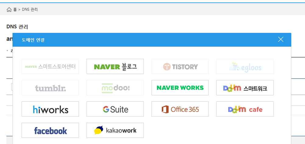 가비아에서 등록한 도메인을 선택한 호스팅 서비스와 연결합니다. 도메인 설정에서 네임서버(NS) 정보를 호스팅 업체에서 제공하는 정보로 변경하여 도메인과 호스팅을 연결합니다.