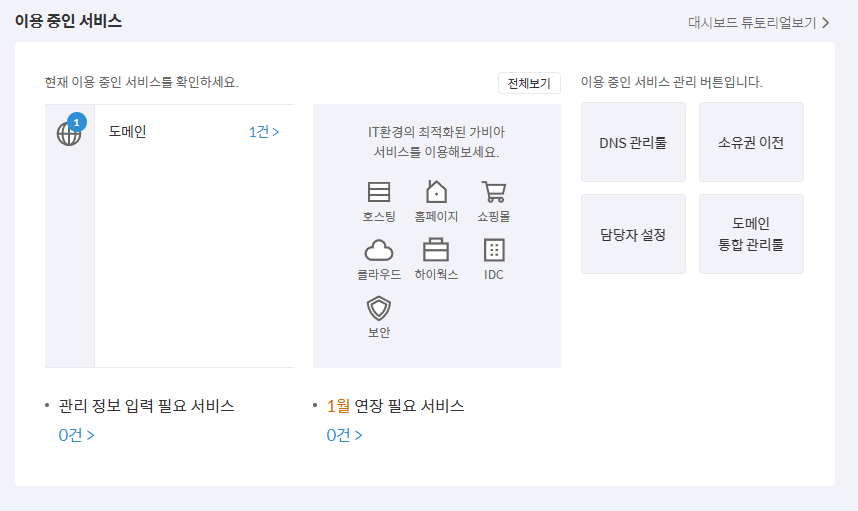 모든 정보를 정확하게 입력하고 약관에 동의한 후에는 등록을 확인하고 완료합니다. 등록이 정상적으로 완료되면 가비아에서 도메인을 관리할 수 있는 계정이 생성됩니다.